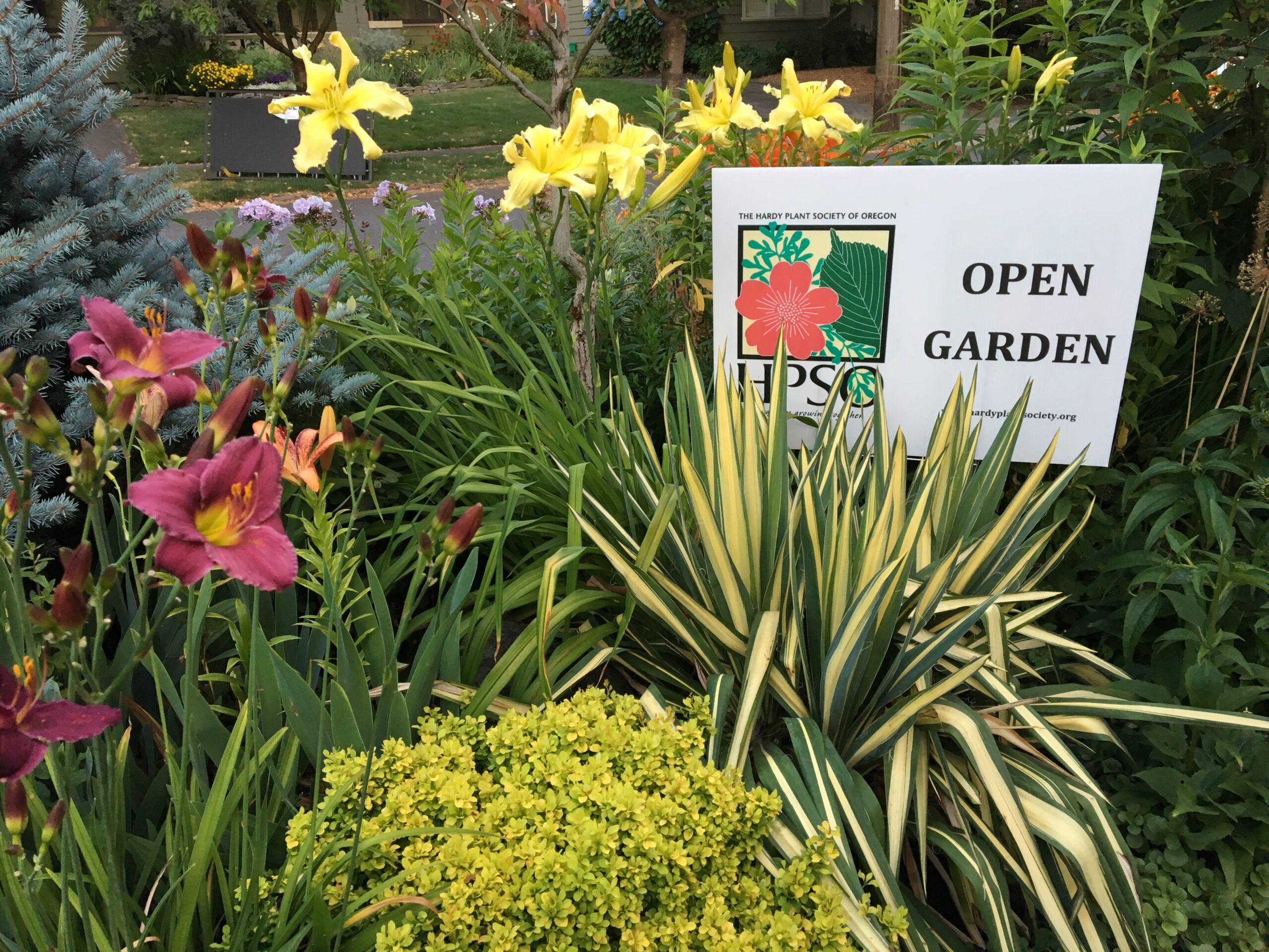Moving out of the shadow of Forest Park sixteen years ago, I found a rare, sunny, tree-less lot in Irvington. The first year, the scraggly grass and puny rhodies had a close encounter of the bulldozer kind. David Mason (formerly Hedgerows Nursery) helped me make a plan for the terraced front garden, to include a rock garden, a dry creek and a small bridge. After I planted lots of rocks and boulders, the sun-loving plants soon followed. Later, the parking strip became a garden and the backyard became a woodland garden under the borrowed shade of neighboring birch trees. This summer a climate friendly gravel area will be added to reduce watering. I am also revising the container garden in the driveway (who says you need to put a car there.) The pergola at the back end of the driveway makes a great patio, particularly now that the climbing hydrangea has had about 10 years to scramble over the top. I look forward to sharing the garden again this summer.