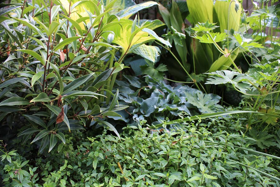 My favorite ground covers for shady spots (that aren't ferns) include: