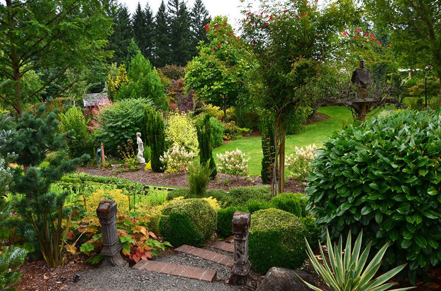 A spectacular garden that is well worth your drive to Estacada, Oregon, “Laurel Hedge” is a two acre estate composed of garden rooms featuring roses, flower gardens, bamboos and evergreens. Enhanced with statuary, rustic structures, fountains and water features, there is something fabulous around every corner. A boutique and nursery is also on site.