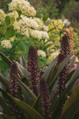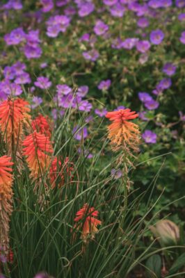 However, there are plenty of english garden favorites, like hydrangea and geranium, paired expertly with such plants as Joe Pye Weed, kniphofia, and agastache.