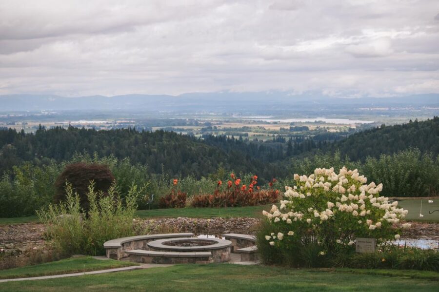 It would be easy for a garden to feel dwarfed by the towering evergreens and surrounding peaks, but Lisa avoids this by providing equally impressive garden elements, such as a huge pond, mature trees, and arbors around the garden.