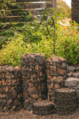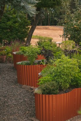 The garden surrounds Mary and Harlan's home but is fairly sloped, so terraced paths make strolling easier. But this garden is much more than the plants! Harlan is a skilled artist and metalworker and the garden is filled with his creations. From corten steel raised beds, stone gabions, and even a galloping horse made of reclaimed pipe, there are whimsical surprises around every corner.